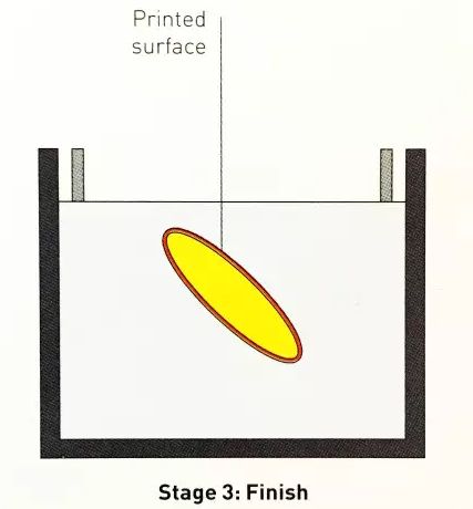 步驟1:激活:在印好圖案的底紙上噴涂封面油